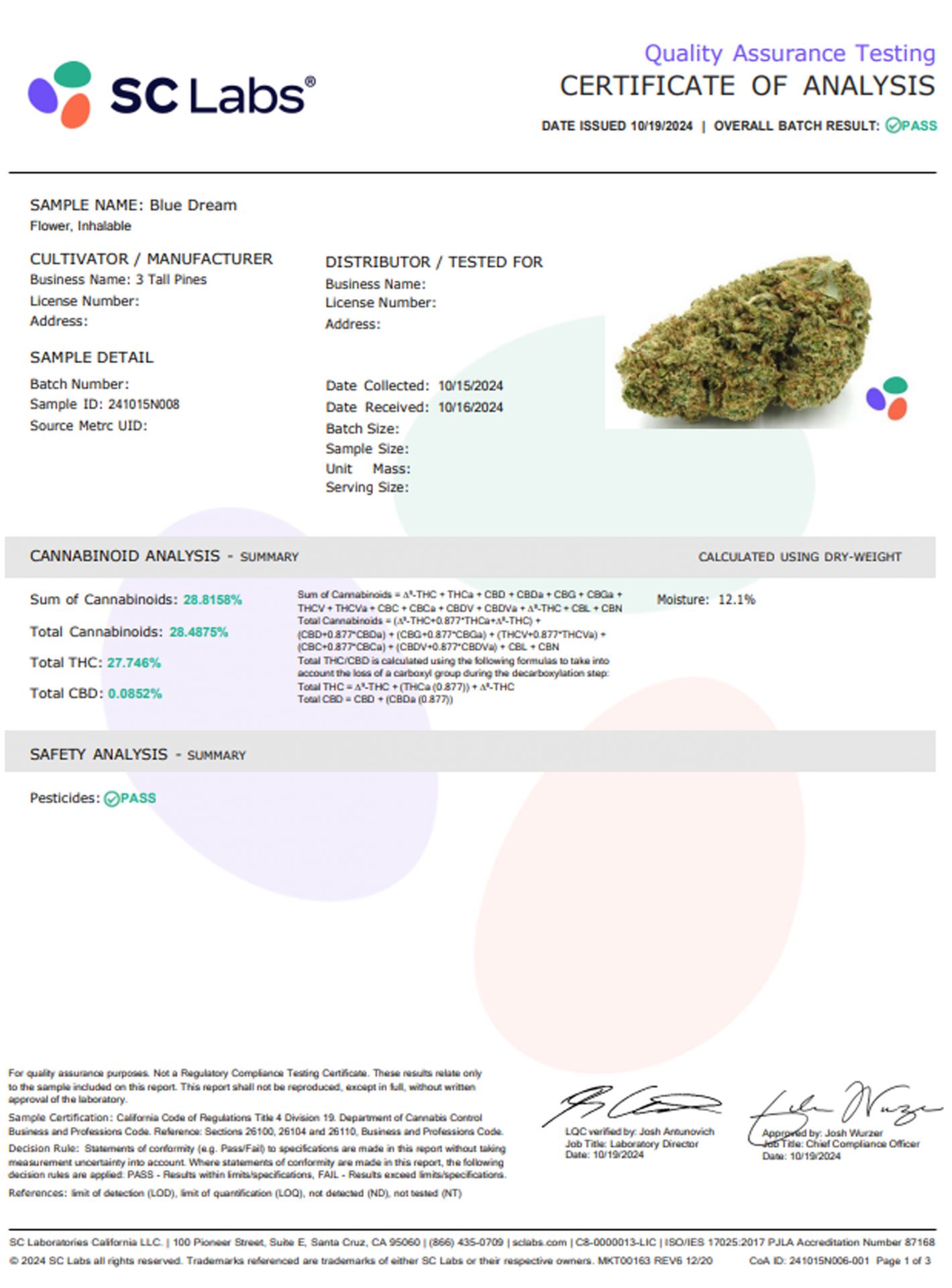 Blue Dream | 27.74% THCa | 28.48% Total Cannabinoids