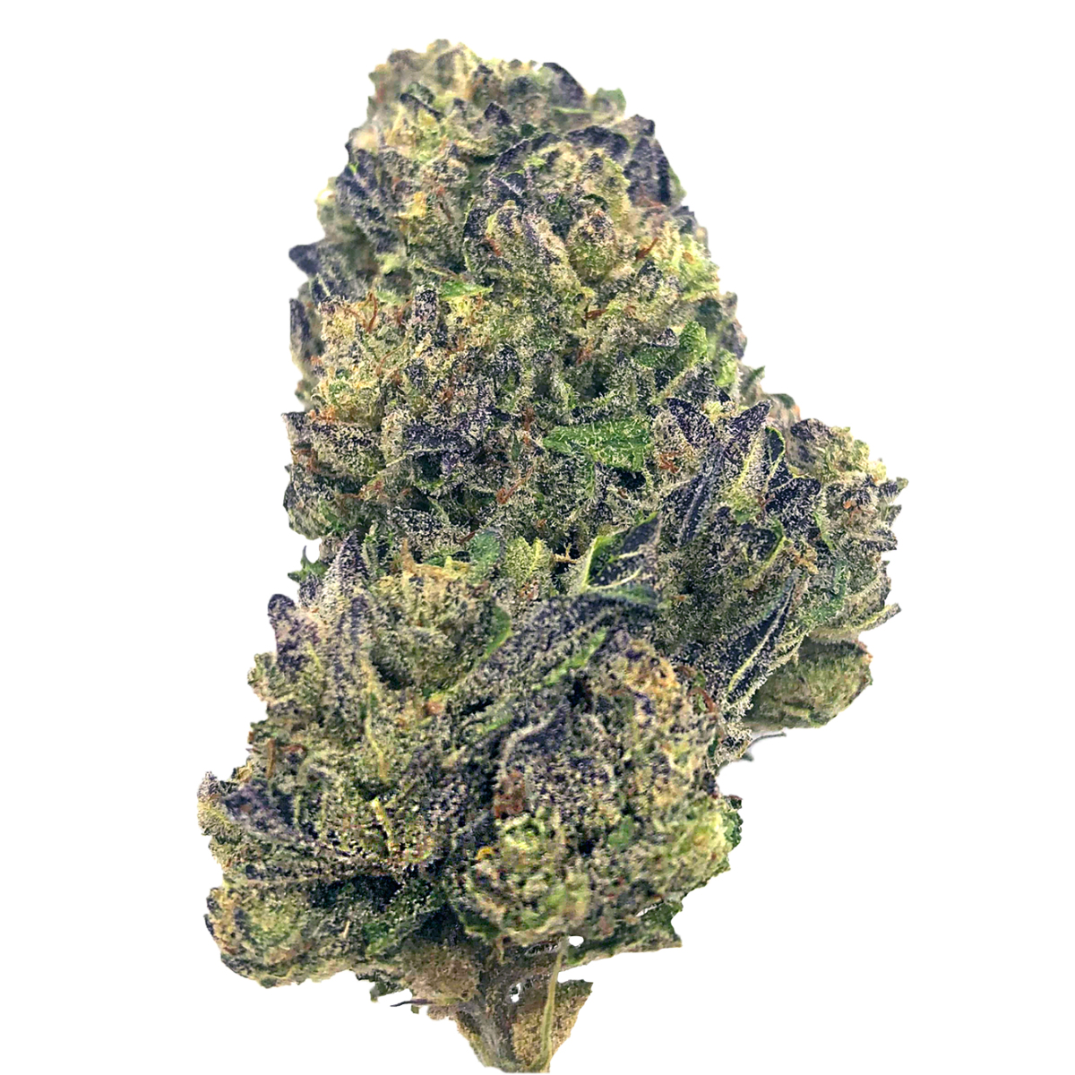 Looks that hit as hard as it smokes: expect dark olive green nugs with vibrant red-orange hairs and a frosted coating of crystal trichomes that signal potency from first glance.