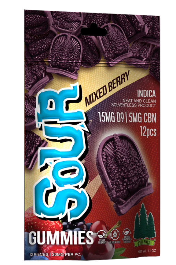 Delta 9 Gummies - Sour Mixed Berry - 15mg Delta 9 + 5mg CBN - IndicaDelta 9 Gummies – Sour Mixed Berry – 15mg Delta 9 + 5mg CBN – Indica