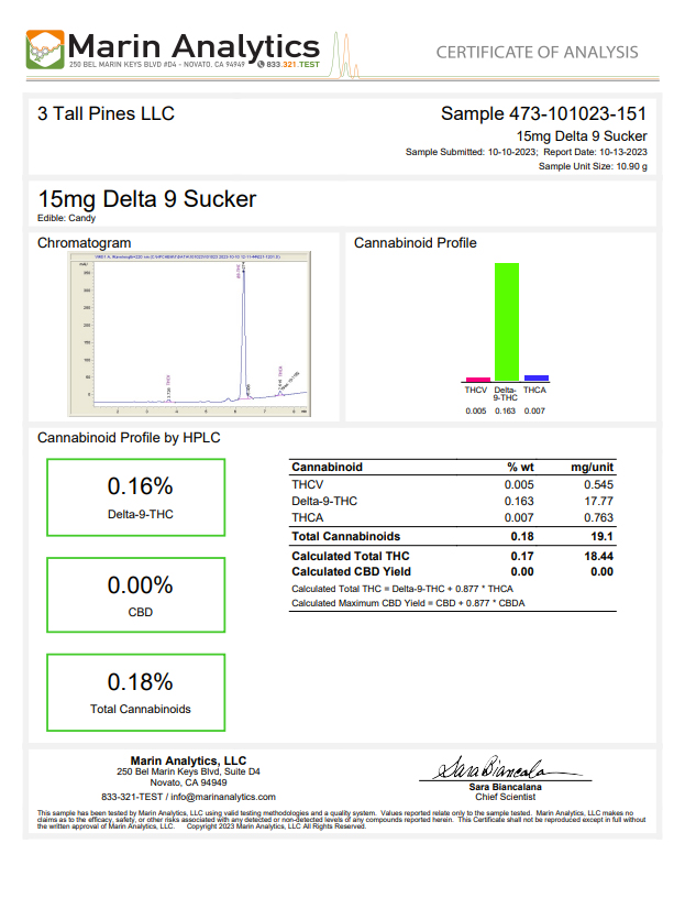 15 mg hemp-derived Delta-9 THC per sucker