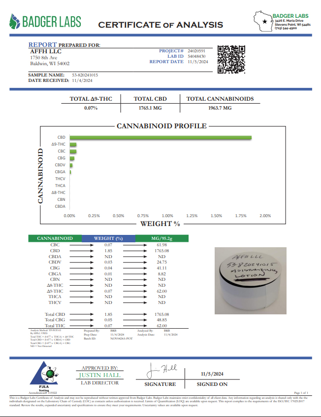 Our Lemongrass CBD Lotion combines the therapeutic power of 1500 mg of full spectrum CBD with a blend of skin-loving botanicals for deep hydration and daily care. Infused with Vitamin E, Green Tea, and Aloe, this formula helps to soothe, protect, and revitalize your skin while providing the natural calming benefits of CBD.