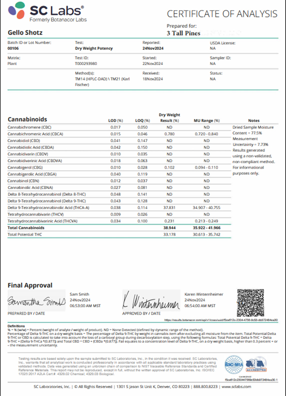 - High Potency: At 37.831% THCa, Gello Shotz gives you a powerful and lasting effect.