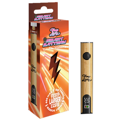 Elevate your vape setup with the Hemp Living Smart Battery, designed for performance, style, and convenience. This 20-pack display box includes four (4) of each color: Forest Green, Midnight Black, Rustic Hickory, and White Widow—giving you a versatile, eye-catching selection.