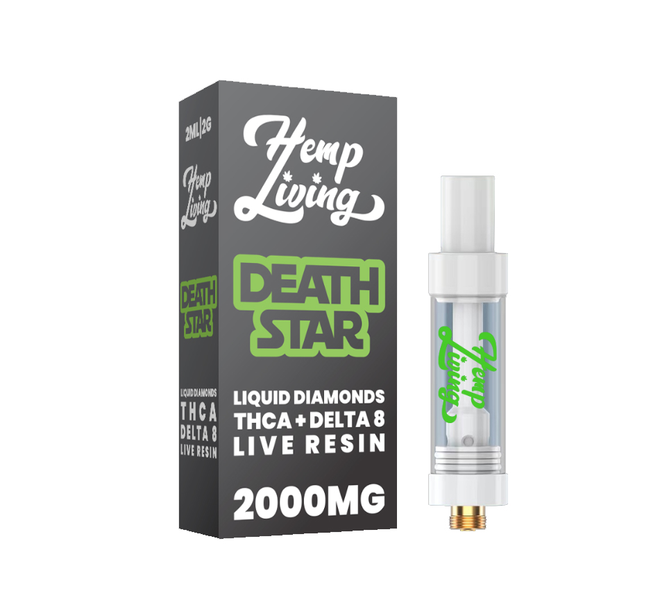 Hemp Living – THCA + Delta 8 Live Resin Liquid Diamonds – 2g Cart – Death Star (Indica)